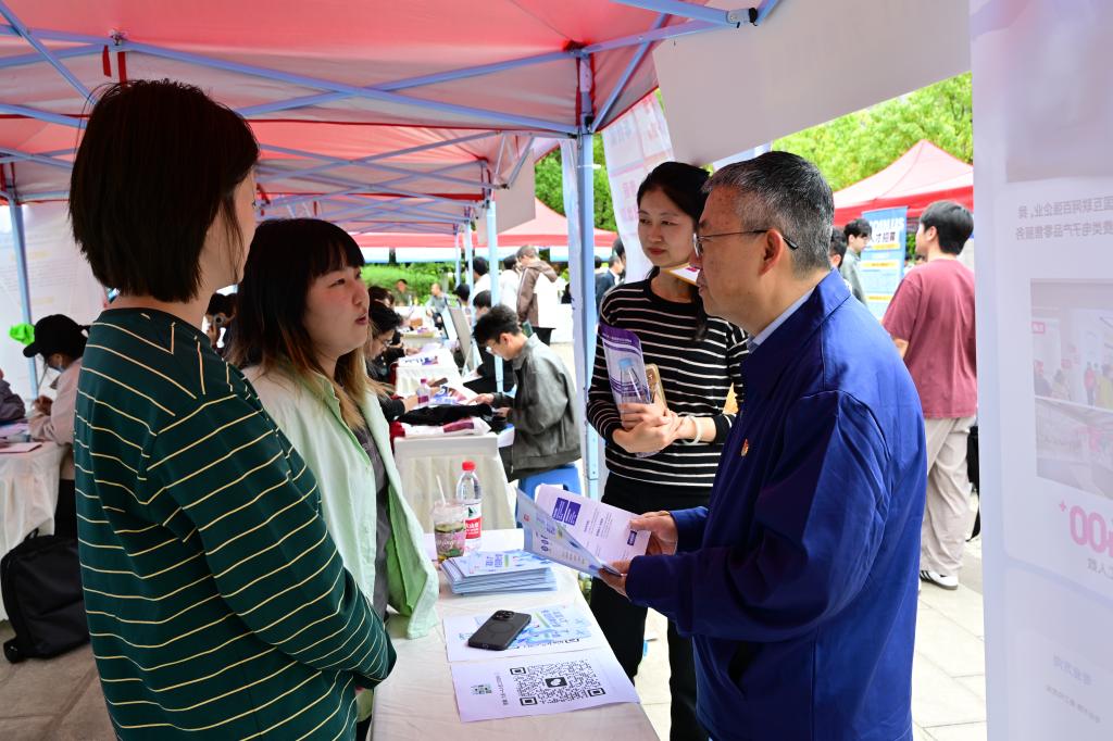 4月10日下午,信息工程与自动化学院(人工智能产业学院)2026届毕业生双向选择洽谈会暨第八届校友企业专场招聘会,在呈贡校区信自楼前小广场举行。学校党委副书记蔡金红莅临活动现场,与参会用人单位代表和求职毕业生深入交流,详细了解岗位供给、学生求职等供需对接情况。
